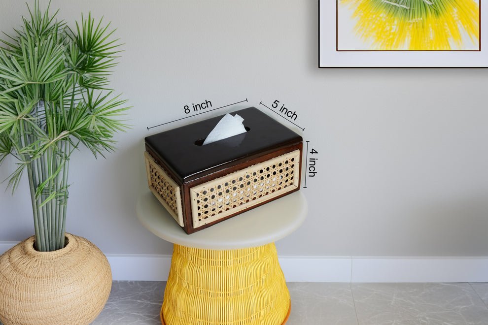 The WovenWood Tissue Box is a chic and practical addition to any home. Crafted with care, it features:
